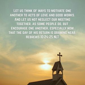 24 “And let us consider how we may spur one another on toward love and good deeds, 25 not giving up meeting together, as some are in the habit of doing, but encouraging one another—and all the more as you see the Day approaching.”