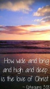 Many beautiful songs have been written about God’s big love, such as “Oh the Deep, Deep Love of Jesus” by Samuel Trevor Francis, and a newer one by Stuart Townend called “How Deep the Father’s Love for Us.“